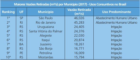 Levantamento também apresenta municípios e estados que mais retiram água por tipo de uso do recurso. Evaporação de água nos